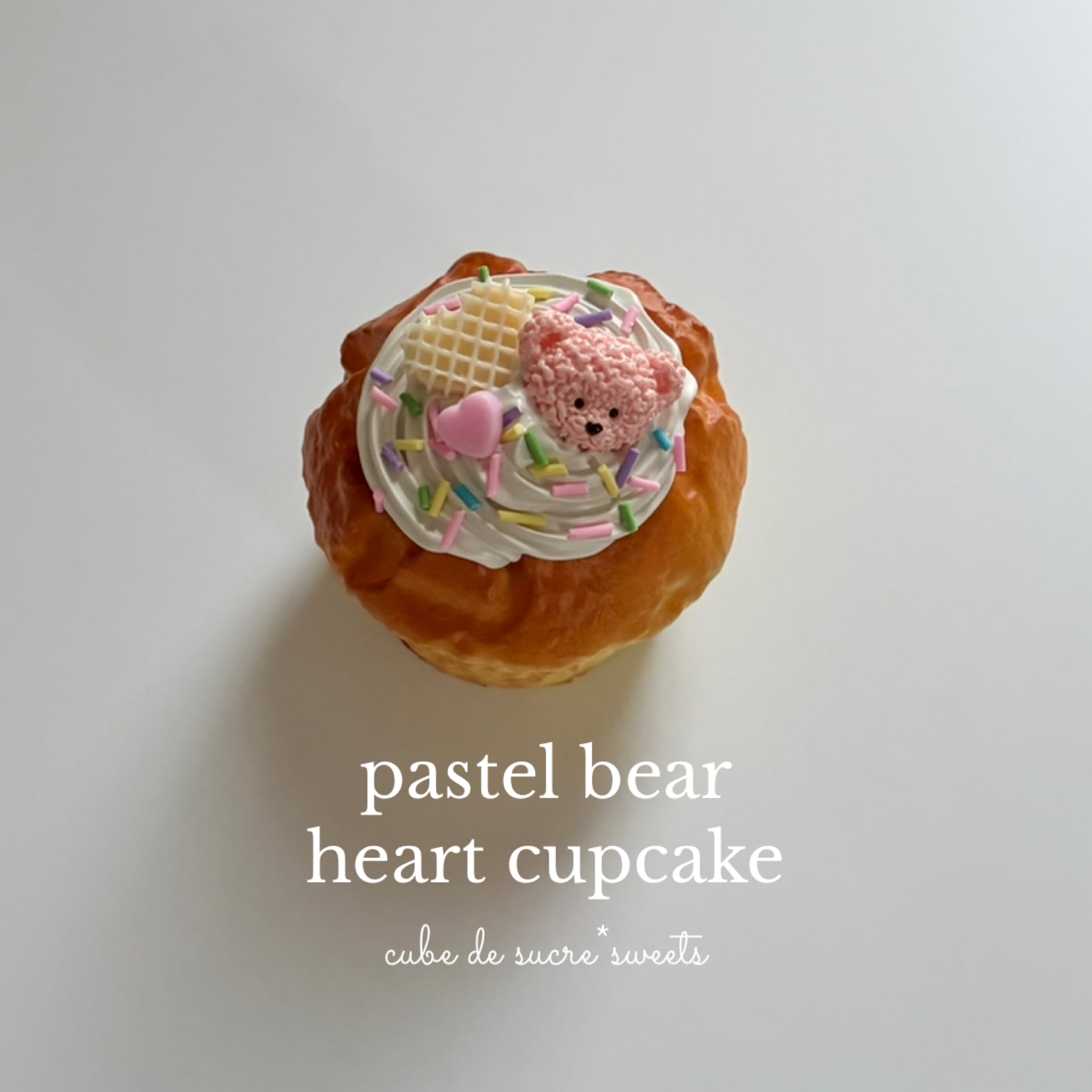カラフルなチョコスプレーをかけ、くまさんとハートチョコを飾りました。